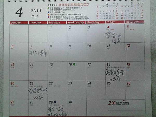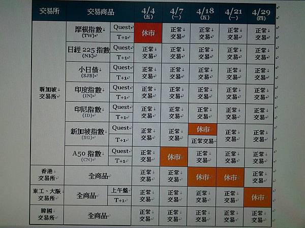 貼心小提醒: 4/4(五)摩根休市。4/7(一)A50休市。