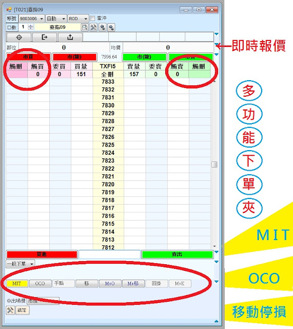 有下單夾/即時損益/平倉按鍵/成交及委託回報