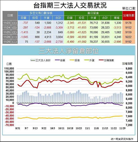 🌸三大法人合計賣超2,730口,未平倉淨多單減至78,237口
