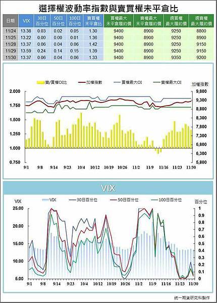 🌸買賣未平倉比減至1.33,恐慌指標(VIX)減至13.37