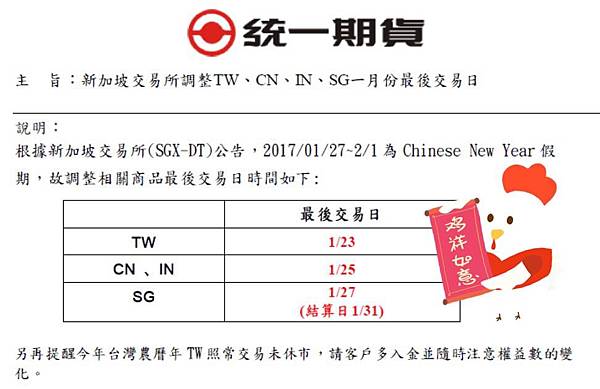 👉1/24號台股封關,2/2開新春開紅盤,但是"新加坡摩台指數"不隨台灣假期休市,所以春節期間照常交易((有開盤der ~))