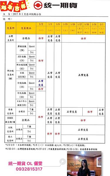統一期貨 台中分公司 (業務經理) 王儷雯 (統一期貨OL)