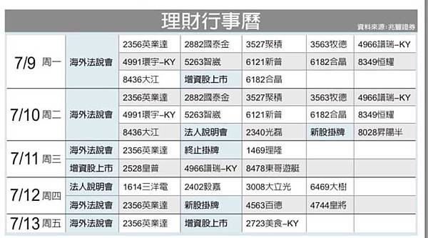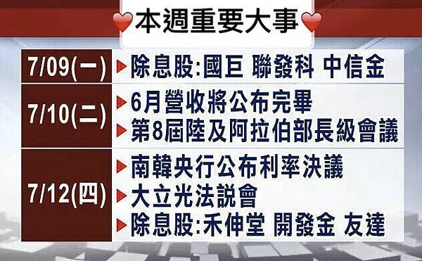 107/7/9~7/13本周財經一覧表@統一期貨王儷雯