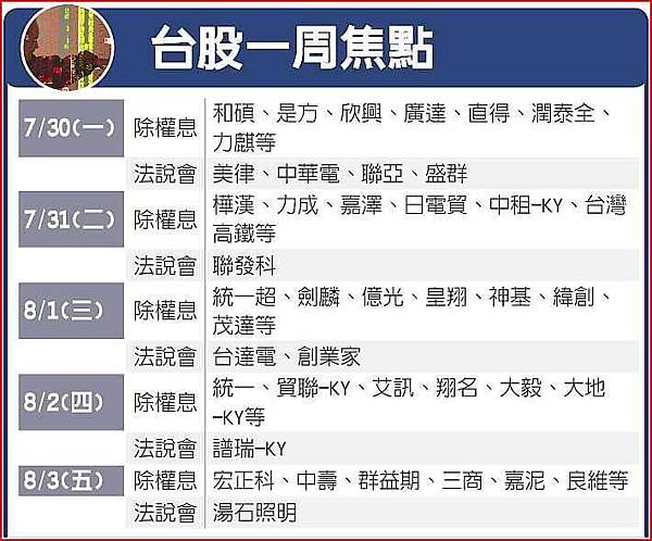 107/7/30-8/3財經一覽表@統一期貨王儷雯![]()
