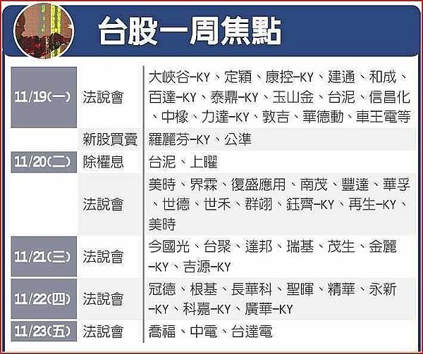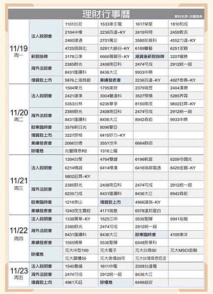 107/11/19~11/23財經一覽表@統一期貨王儷雯
